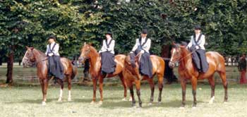 Le 14 juillet 1987, les amazones des Vosges sont les hôtes des courses de Vittel. Pour cette occasion, la maison Hermès avait prêté de superbes chemisiers. Lysiane, nouvelle recrue profite de cette aubaine !