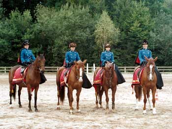 Carrousel à 8 chevaux : 4 amazones et 4 cavaliers