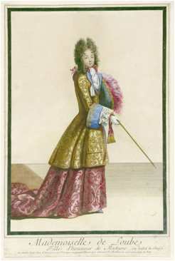 se coiffait d’une perruque d’homme et d’un tricorne à bords hautement relevés