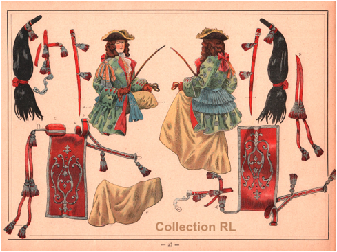 queue des chevaux étaient nouées d’une passementerie au 1er quart de sa