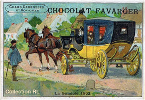 4 chaises de poste, 2 vis-à-vis, 2 diligences, 2 gondoles, 1 calèche, 1