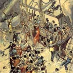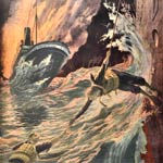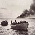 "Le palais qui va sur l'eau", le Normandie, immobilisé à New-York en 1939, rebaptisé USS Lafayette, chavire sous le poids de l'eau destinée à noyer l'incendie, dans le port de New-York. Renfloué, il est finalement démoli.